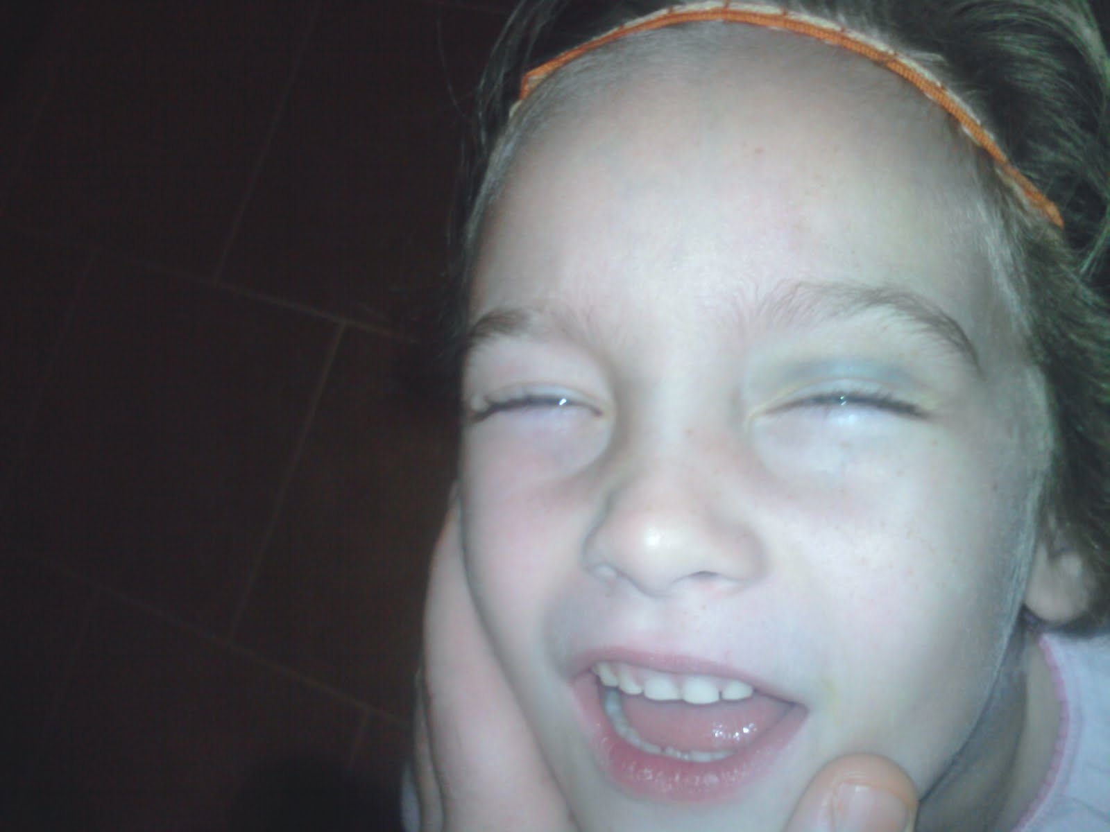 Alice and anna were playing when annas head konked into alices eye. This is the result.