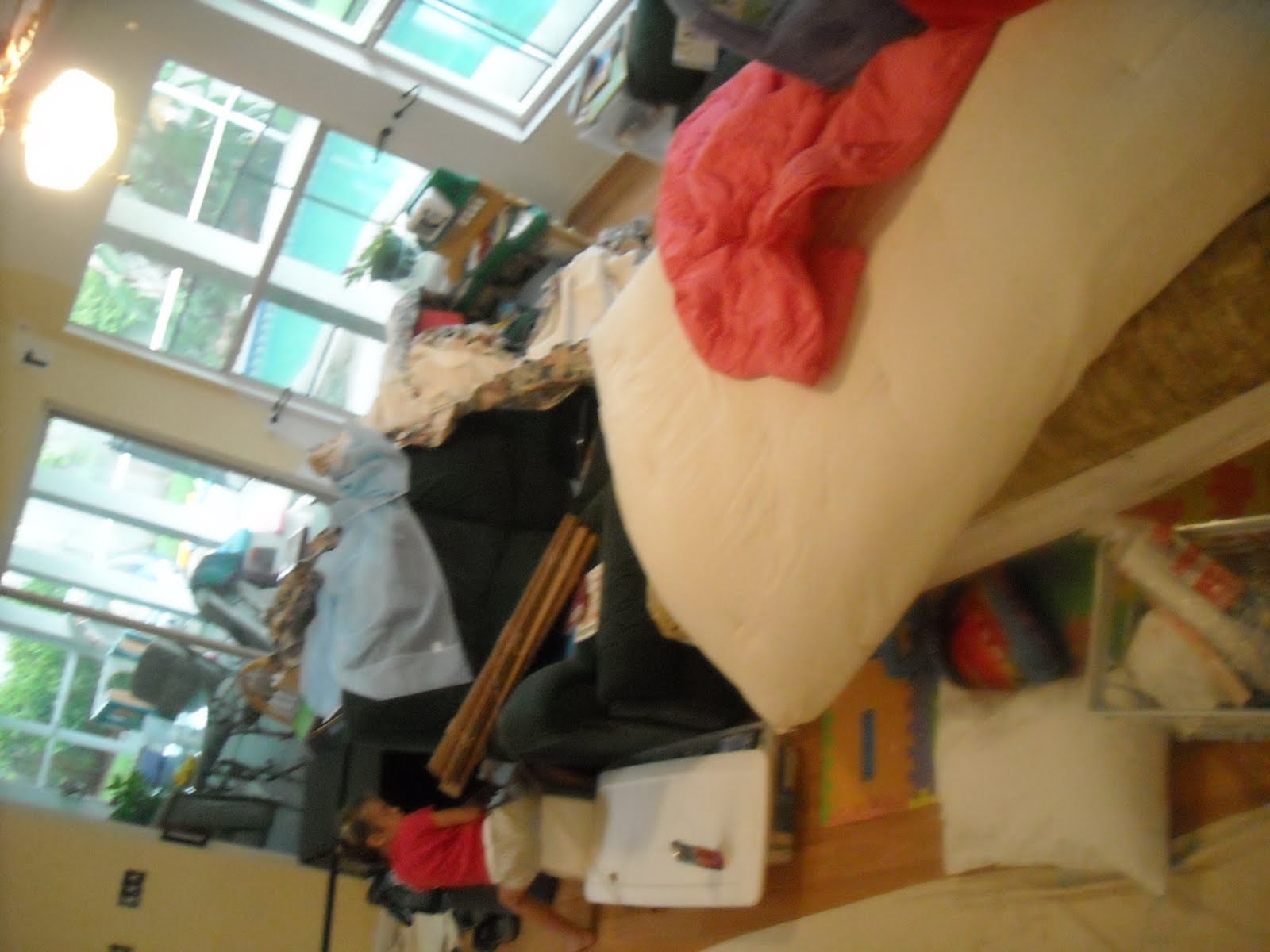 it seem we were hit by hurrican renuva, which required us to make a mess to recover from the damage. the damange was so extenisve we were required to paint the family room, the hall ways,and the kitchen, and the spare bed room. Also, new floorig was required. currently everything is in the living room while the flooring is being put into the kids rooms. the new carpets were due on saturday but will onluy arrive on monday.